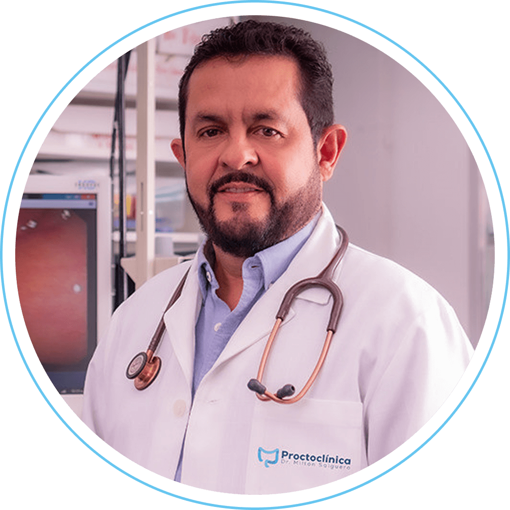 Proctoclínica del doctor Milton Salguero es una clínica especializada en enfermedades de colon, recto y ano posee todos los recursos necesarios para hacer diagnósticos y tratamientos terapéuticos y así poder evitar complicaciones como una operación, cuenta con equipo de última generación como el colonoscopio Fijinon Eluxeo 7000 que brinda un aumento hasta 135X para colonoscopias con microscopio y con este equipo se obtiene una mayor certeza para decidir si se extirpa o si quedan residuos en el área afectada, nuestro objetivo es brindar atención especializada y de alta calidad, mejorando la calidad de vida de nuestros pacientes.